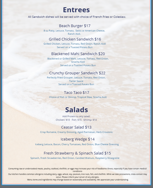 Whether you’re taking a break from the sun or fueling up for more adventures, our lunch menu keeps the island vibes flowing: